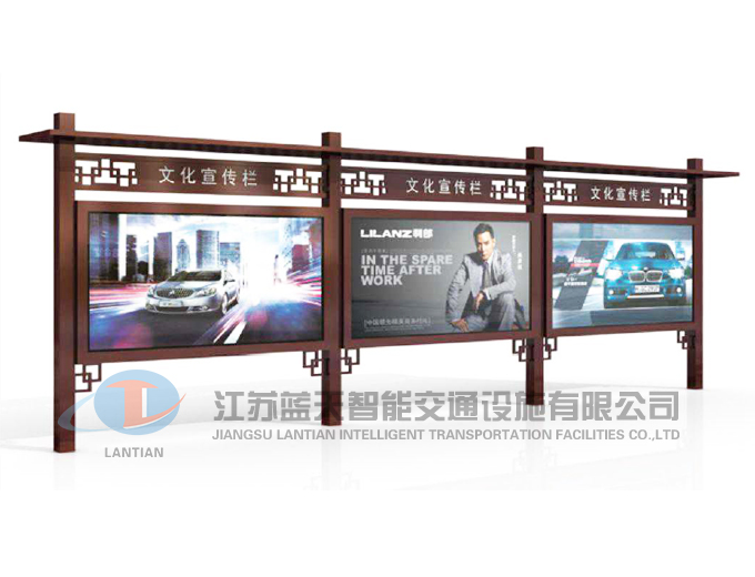 是一家生產(chǎn)宣傳欄,候車亭,公交站臺,閱報欄,指路牌,廣告垃圾箱,滾動換畫燈箱等系列產(chǎn)品廠家!產(chǎn)品多達上百種,亦可根據(jù)客戶的需求加工制作各種型號、規(guī)格的產(chǎn)品。目前已經(jīng)成功的向市場推出裝備有太陽能的各類產(chǎn)品,緊跟國家倡導“節(jié)能低碳”的環(huán)保政策。